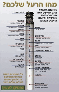 הנזק של העישון הוא עצום למעלה מ 4000 ארבעת אלפים רעלים בסיגריה.